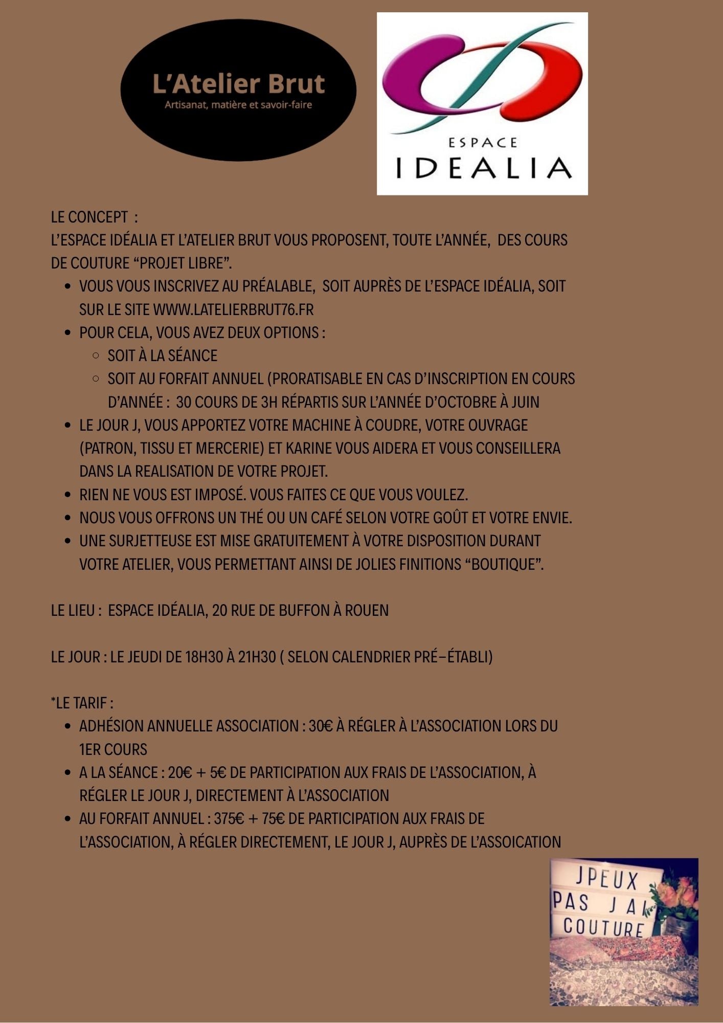 - Le 1er : Atelier Couture Projet Libre, de 19h à 22h, à la Mairie de Cailly (76690)